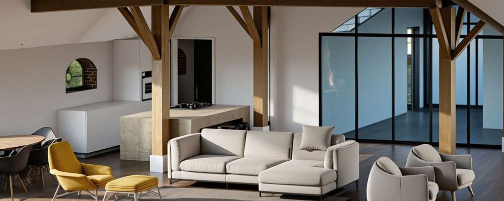 Op de begane grond is een grote open keuken ontworpen met een enorm marmeren eiland, zodat er naast elkaar gekookt kan worden, met uiteraard een grote lange eettafel om met elkaar van alle culinaire creaties te kunnen genieten. Een mooie loungehoek met een fijne openhaard maakt deze ruimte helemaal af. Dit alles is ontworpen rondom de originele houten constructie van de boerderij met prachtige houten pilaren en balken. Door deze combinatie van moderne inrichting en originele elementen is er een unieke sfeer ontstaan die uitnodigt om de ruimte te ontdekken en te gebruiken.
