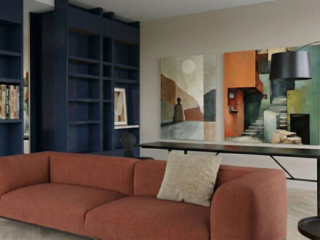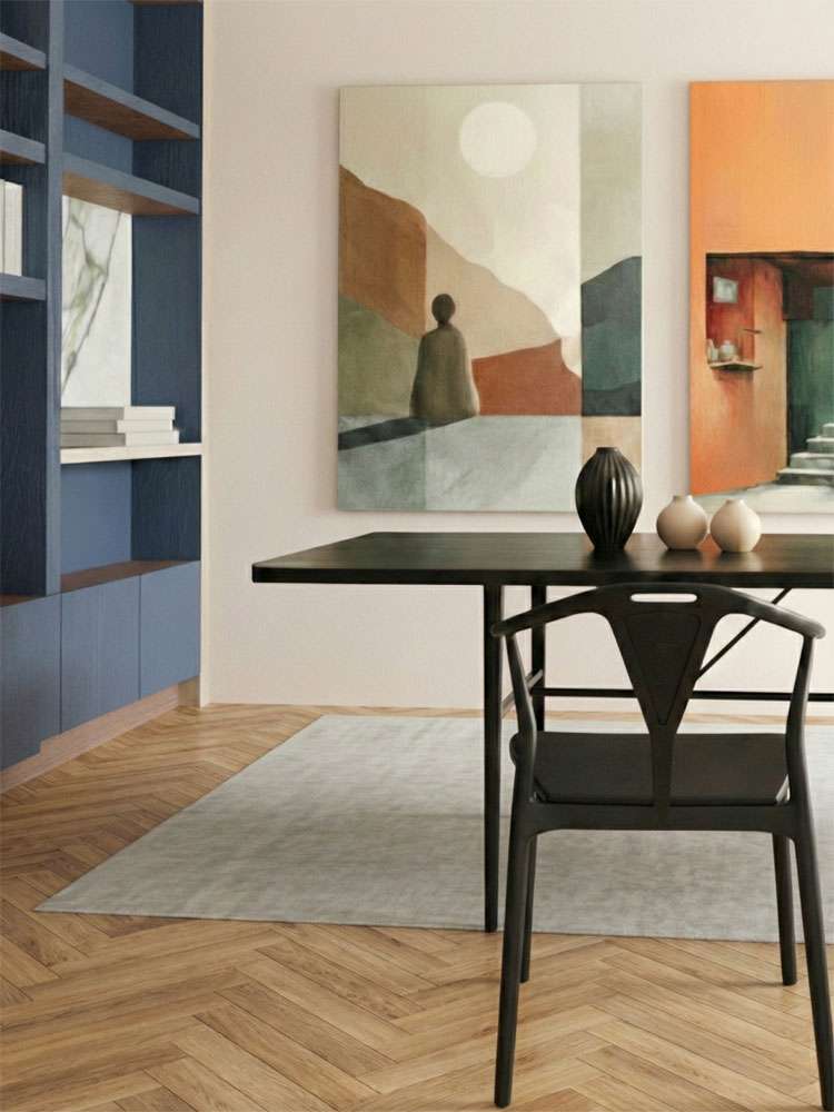 Het doel is om harmonie te creëren in alle ruimtes van het huis. Dit wordt gerealiseerd door de tekening van de op maat meubels die bij de gang en de andere woonruimtes terugkomt. Terwijl contrasten bij stoffering, kleuren en meubels stijl geven en bijzondere uitstraling aan het appartement.